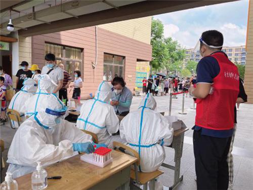 7 月 23 日,朗诗青春街区物业员工积极配合医护人员及社区开展第二次核酸检测工作,贡献自己的一份力量。