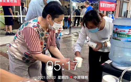 疫情之下,恒大物业派人支援检测点,争分夺秒、连夜奋战,完成了排队区设置、检测队伍分流、宣传物料采购、应急物资准备等各项工作。同时把酸梅汤、矿泉水等清凉物资送到各核酸检测点,配合医护人员完成工作,获得了业主们的充分肯定。