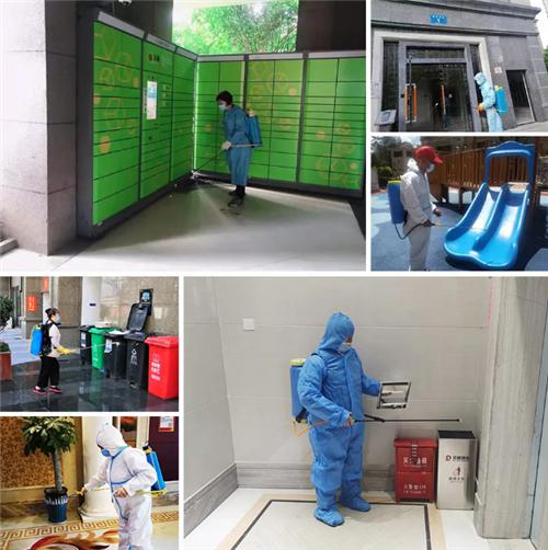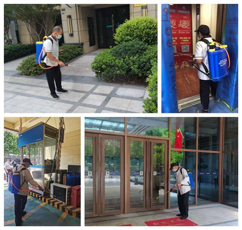 为了杜绝隐患,物业工作人员进行了更加高频次的消毒措施,通过定时的酒精喷洒,公共物品酒精擦拭,开窗通风等措施,坚决做到让病毒无处可藏。