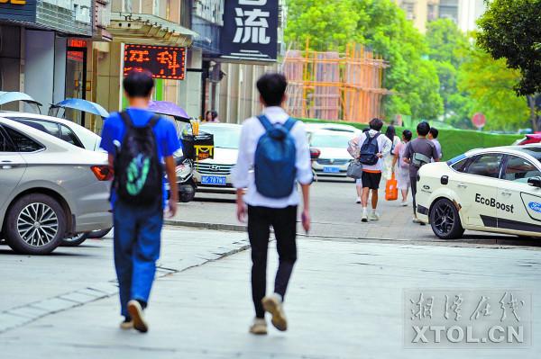 7月19日下午下课后,学生们陆续离开岳塘区双拥中路某校外培训机构。(湘潭日报社全媒体记者 欧阳天 摄)