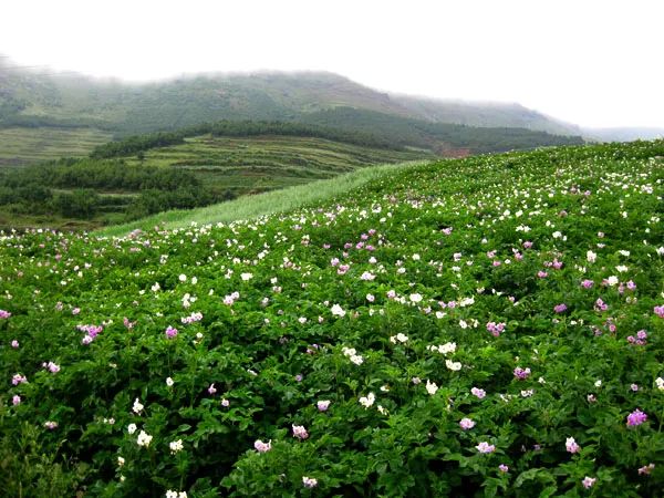 由于所种植洋芋品种的不同,今年的洋芋花有白色和紫色两个花色,同时,今年以来炉房持续干旱少雨,炉房乡底里村、噜布村、炉房社区洋芋花开花时间晚了将近一个月。去年的洋芋花在6月中、下旬就开了,而今年到7月初才开。