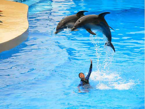 圈养海豚生活在含氯的游泳池内。较之广阔的海洋,游泳池仅仅是冰山一角,在海洋里,海豚一天便可游1000多公里。据预计,约有1600只宽吻海豚生活在圈养环境中,以供表演。