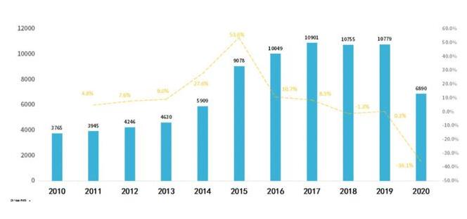 与此同时,相关数据显示,截至2021年3月,我国现存的KTV企业为6.4万家,相较于2014年巅峰时期的12万家已经腰斩。