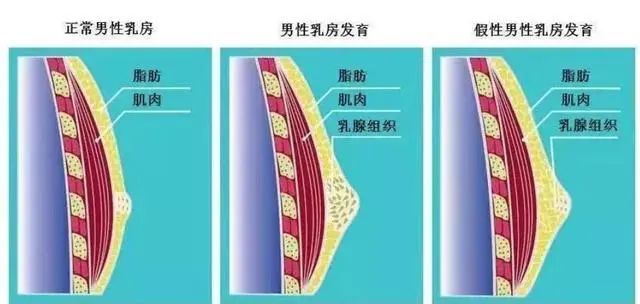 男性胸部平坦,大多数处于不发育状态,只有乳头和少量的乳腺导管和脂肪组织,没有腺泡。而正常男性体内雌激素水平很低,因此目前认为所有的男性乳腺发育都是由于雌激素分泌增多或雄激素/雌激素比值降低或对雌激素敏感度增强所致。