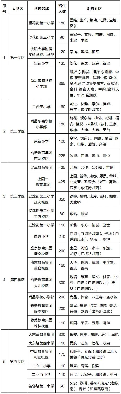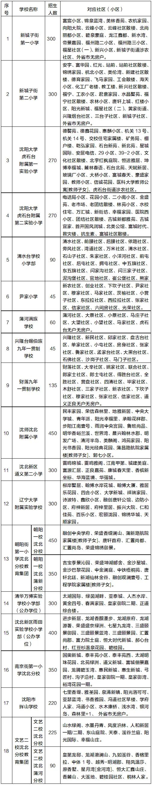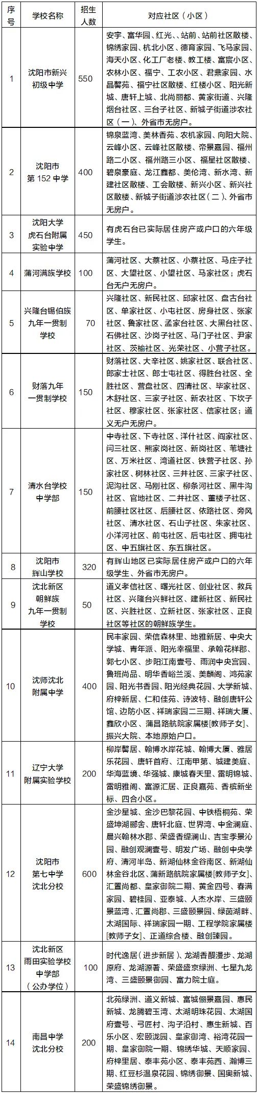 今年沈阳部分学区有了一些变化,新学校开始招生,