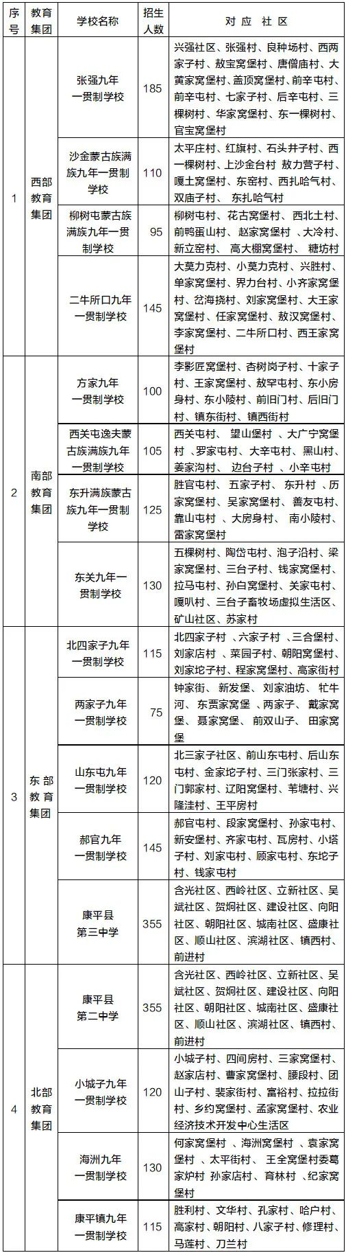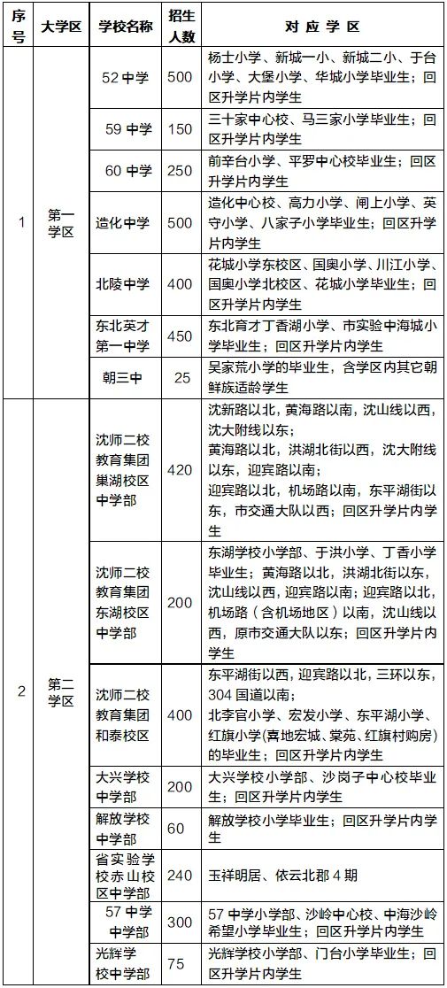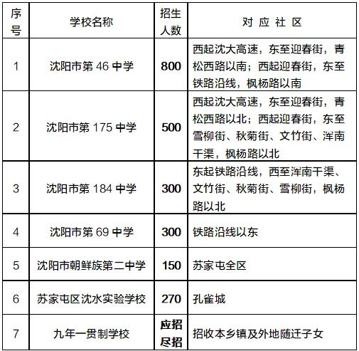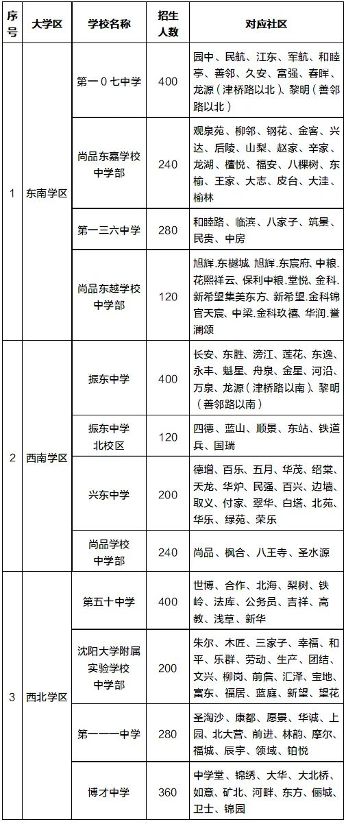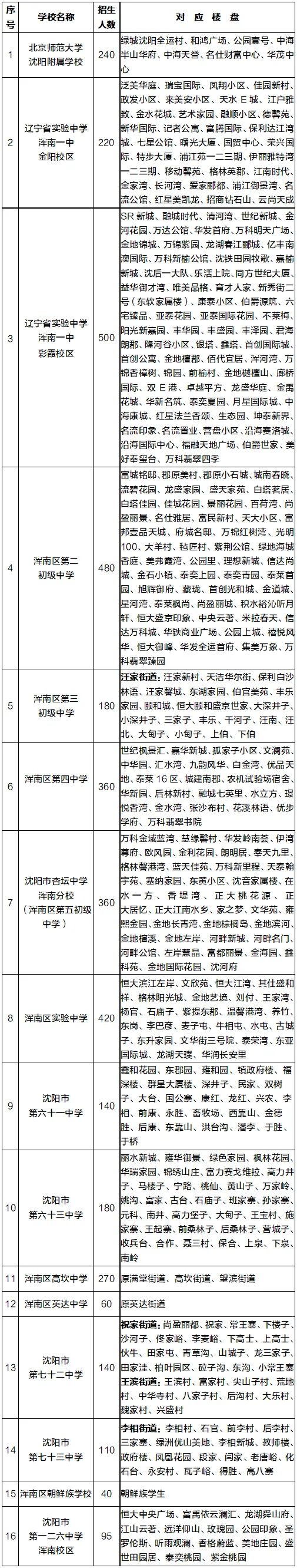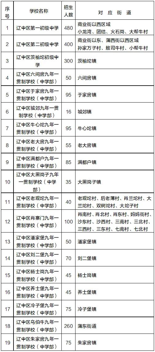 备注:蒲西街道学区划分以父母房产为依据。2021年辽中区学位分配表(初中)