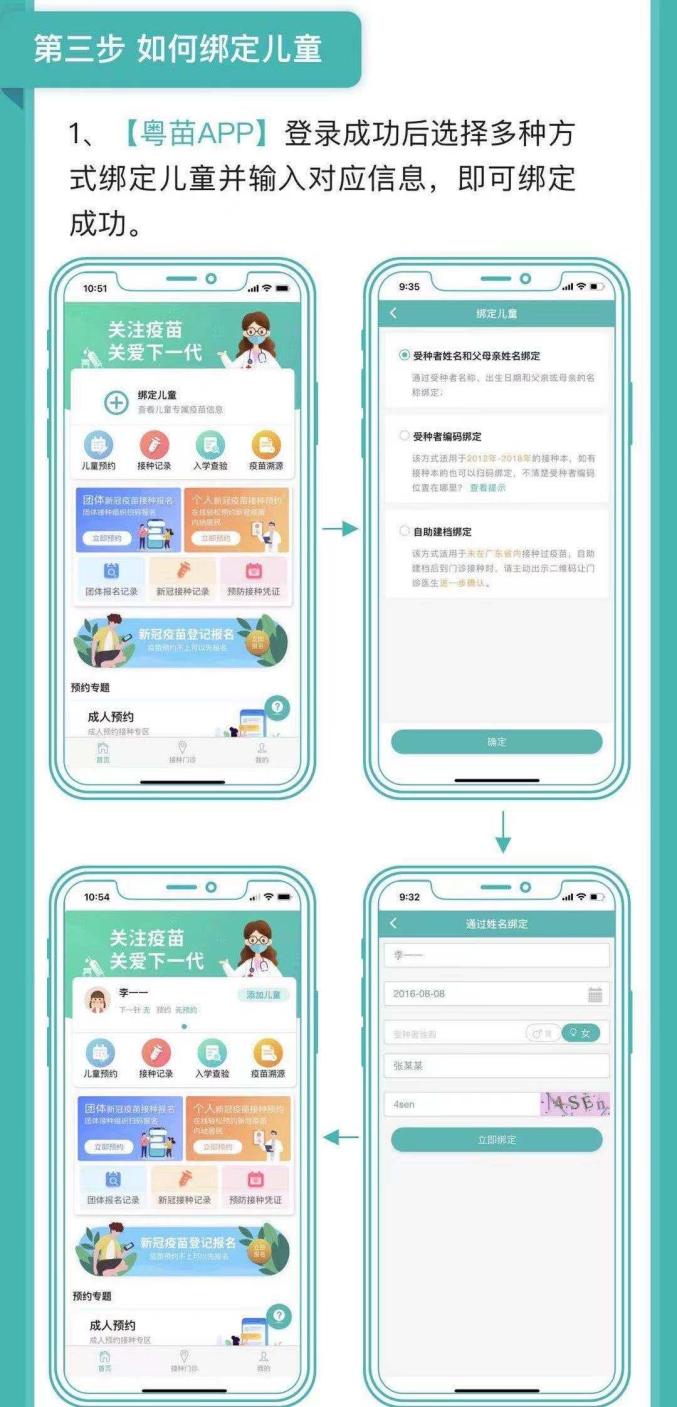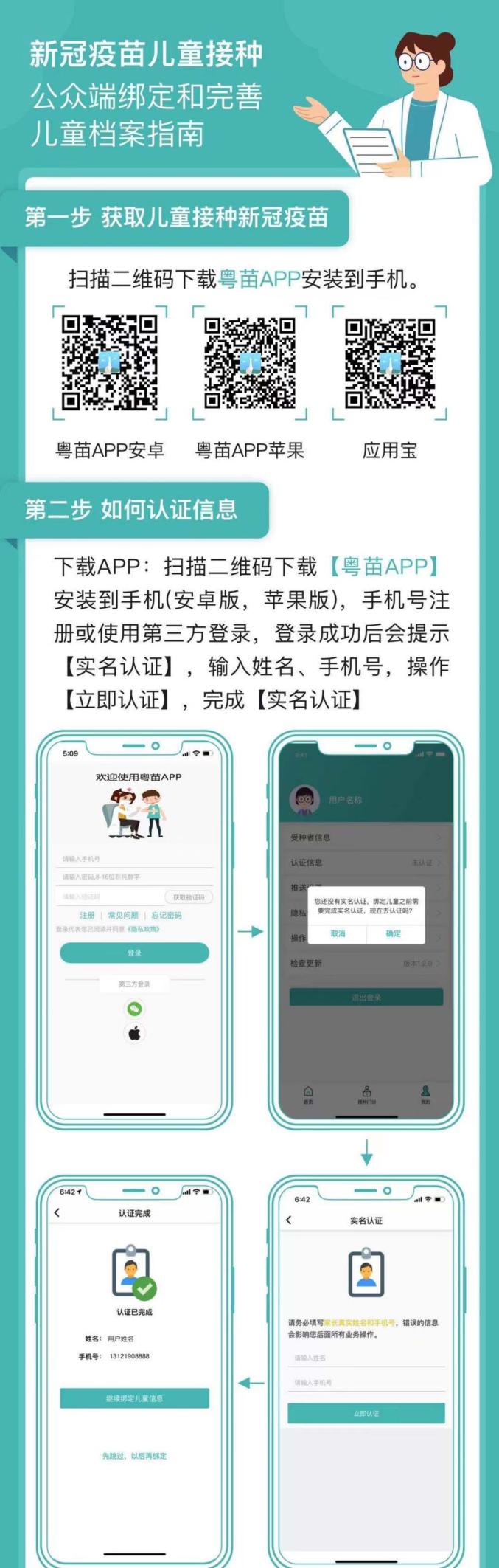 此次我省未成年人群“开打”新冠疫苗之际,需要家长朋友们通过粤苗APP绑定孩子既有的预防接种档案,并完善儿童身份证和家长姓名、身份证等信息,同时生成个人档案二维码,以供接种时使用,不仅方便将新冠疫苗接种信息准确地登记到孩子既有的接种档案中去,还可快速地推进接种工作,大大减少排队的时间。