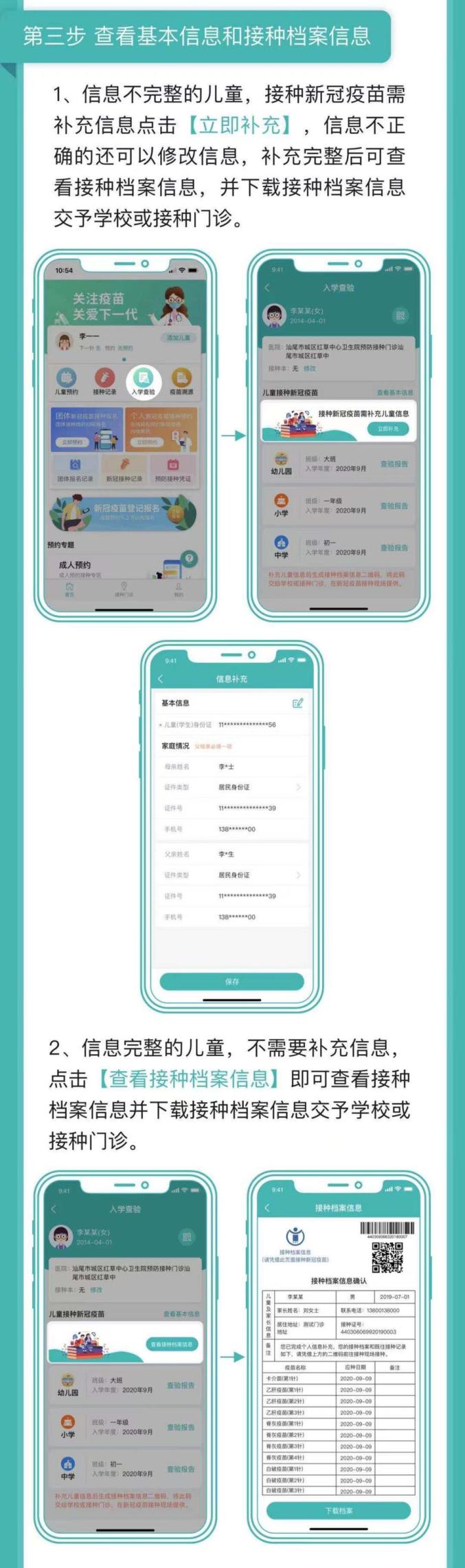 出现这种情况,不要慌!儿童要向医务人员或学校提供本人及其父亲和母亲的姓名、身份证和联系电话等信息,接种时携带儿童、家长身份证原件前往接种门诊,由医务人员进行档案查找实现定位录入,如确实系统中找不到历史档案的,则由医务人员手工录入受种者信息,进行新建档。