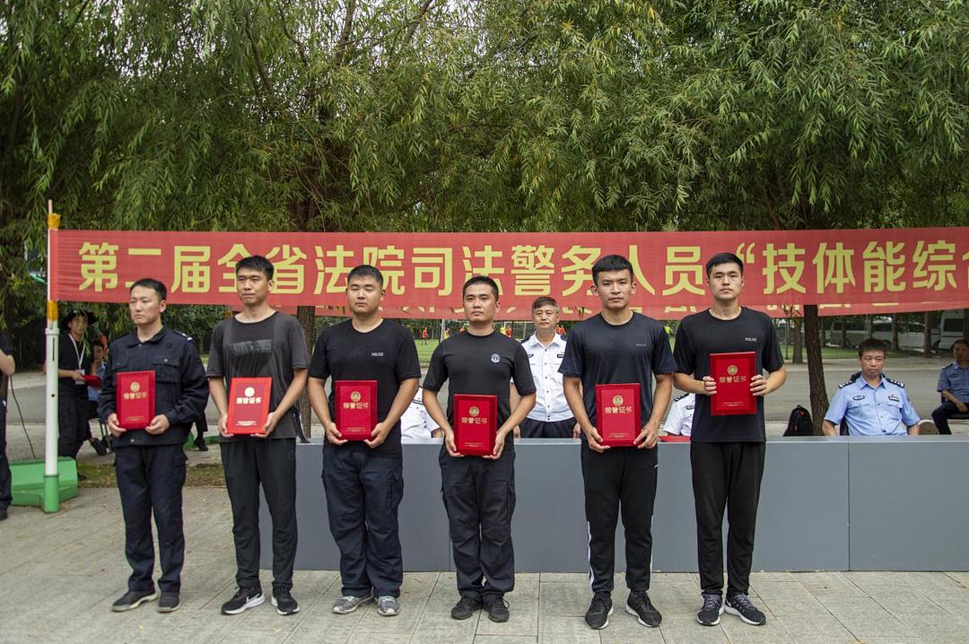 各参赛队伍积极练兵备战,不畏艰辛、不怕困难精训深训,连续两日比赛顶烈日、冒酷暑、战高温,你争我赶、奋勇争先,充分展现了司法警务人员良好精神风貌以及过硬业务本领。最终经过激烈的角逐,队列会操:长春中院法警支队获得团体一等奖;四平中院法警支队、吉林中院法警支队获得团体二等奖;延边中院法警支队、白山中院法警支队获得三等奖;白城中院法警支队、延边林区中院法警支队获得优秀组织奖。程振兴、赵春鹏、杨东兴、郑云峰获得优秀指挥奖。“技体能综合操”擂台赛:延边中院法警支队获得一等奖;通化中院法警支队、长春中院法警支队获得二等奖;白城中院法警支队、吉林中院法警支队获得三等奖;长春中院法警支队、松原中院法警支队、长春铁路中院法警支队获得组织奖。此外,擂台赛还决出个人一等奖3名、二等奖6名,三等奖6名,勇士奖3名,最佳奉献奖1名。