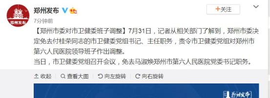 原标题:《郑州市卫健委主任被免职》
