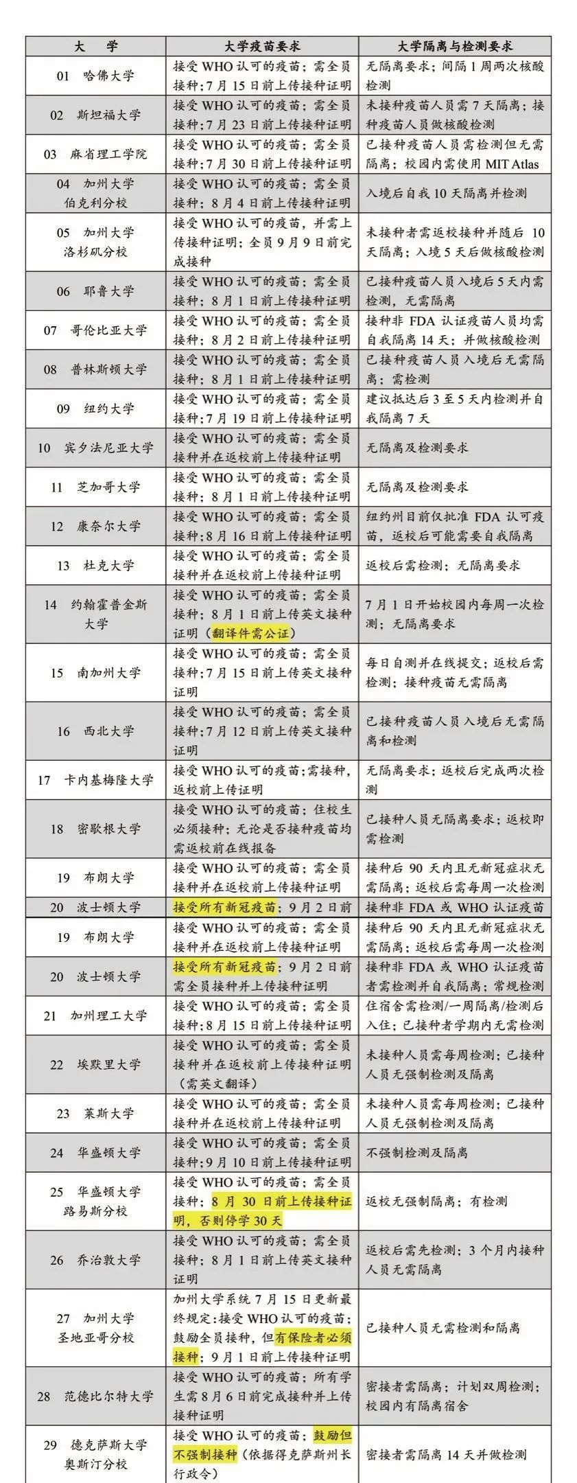 3. 所有学校均要求(个别不强制)接种疫苗,但允许因健康、宗教等原因申请豁免;