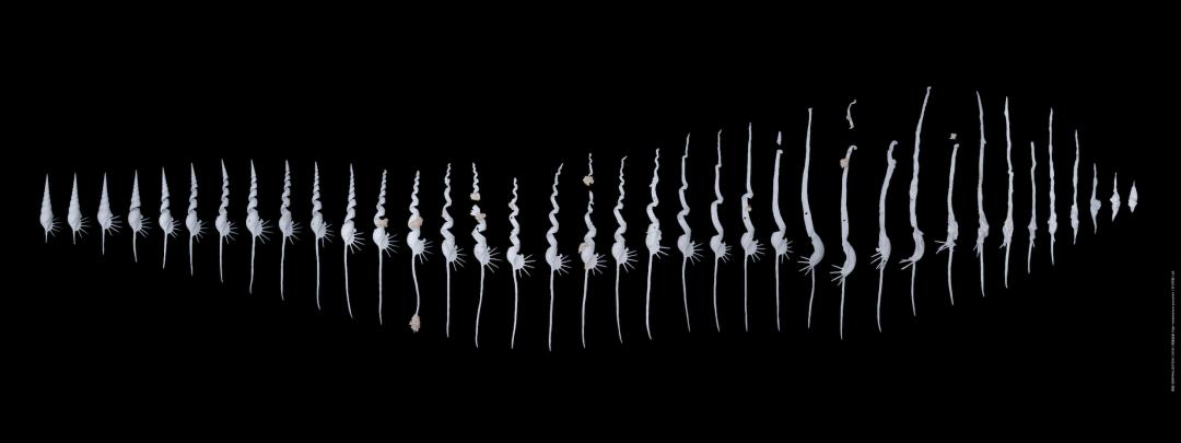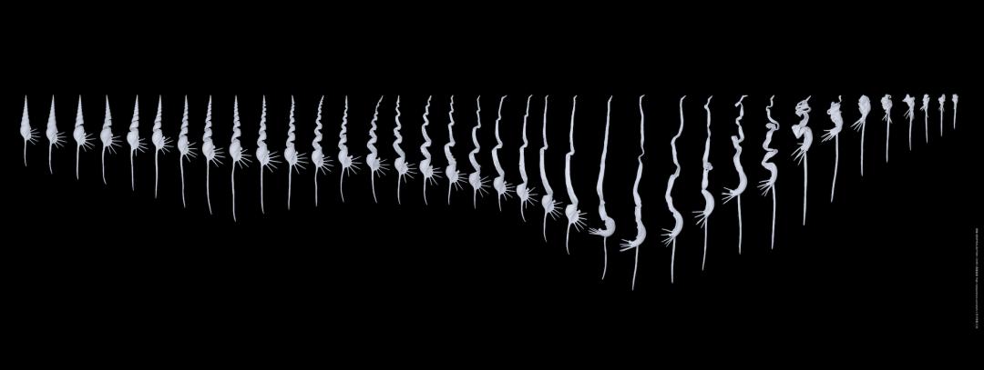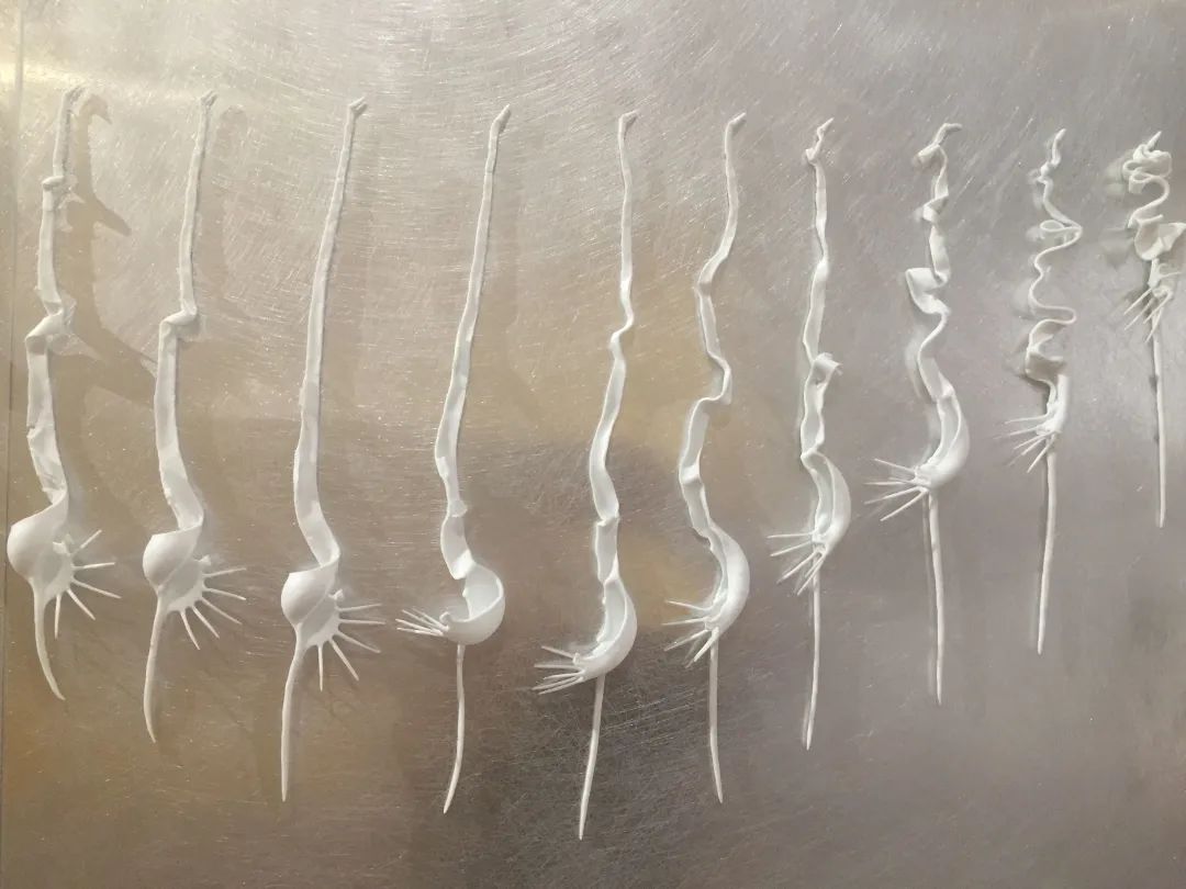 余梦彤 解旋 高温瓷 可变 2021作品自述:螺是一种能够存留最为久远的生命构造之一,它们代表了一个生命自身产生的空间与生命长度的积淀,也是一个分割生命内在和外在的可视实体。“解旋”是将螺的生命空间进行消解,对同一空间尝试多组不同的拆解方式并保留了创作者当下的感受。每一次的拆解都是将一段生命绵延转录成为一种真实的物质存在。