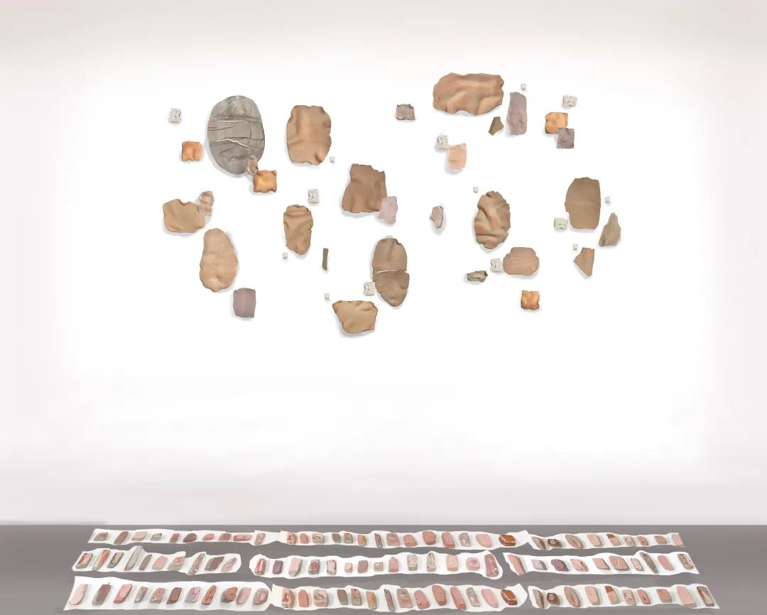 曹睿欣 表皮 陶瓷 尺寸可变 2021作品自述:“橘皮”“副乳”“拜拜肉”“小肚腩”“妊娠纹”“皮肤松弛”这些词语让越来越多的女性“闻风丧胆”,对身体的焦虑越来越多的渗透进女性心底。每位女性在追求美的同时,所谓的“美”也越来越远,越来越窄。生育和衰老给女性带来的痕迹是伟大而美丽的,每个人都拥有的或多或少的皮肤形态也不应成为焦虑的源头。对于“美”的定义,不该越定义越窄。无论女性还是男性,对于各类媒体软件商家渲染出的焦虑情绪也应有相应的判断力和自己的思考。“白瘦幼”也绝不是最高准则。我用陶瓷将所谓的“皮肤问题”表现出来,组合成这件作品,可能当大家用欣赏艺术的角度再来审视,有些“问题”就不再是问题了。