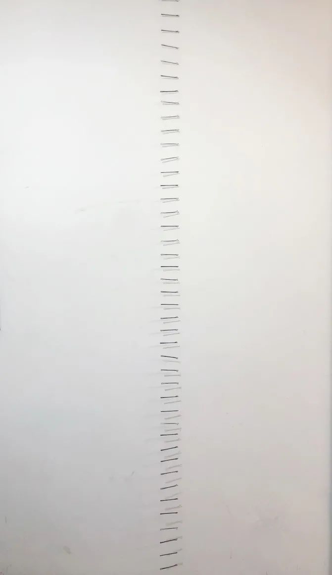 李隽 天梯 700cm*5cm 材料:头发、发卡 2020作品自述:头发生长于围绕大脑的区域,它是身体的一部分,也是思想的一部分。这条梯子来源于我的身体,它是我精神的产物,并且承载着我的思想不断生长、攀爬。
