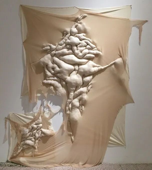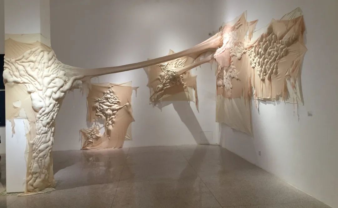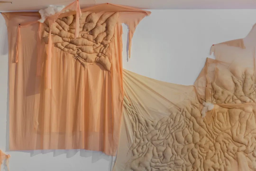 徐丝易 肌肤02 棉花、布 可变 2021作品自述:“您正在看一个人脚掌心上的纹理”当我们从一个宏观的角度去看生活中往往不经意会注意到的东西时,就可以从另外一个角度去发现它的美。我们生活中对美丑的独特定义,也往往来自于一些微小的观点。我们每个人的身体都是大自然中的一个形体,就像一片叶子的 形状,它依据自然规律在空间环境里调整并生长,从而每一片 都不同。就像我们每个人的身体都是大自然中独立的个体,每一处细节也都是独特和值得尊重的,所以我们不应该去用美丑来定义我们每个人的独特性而是用一个宏观的视角去看生活中的每一个细节。