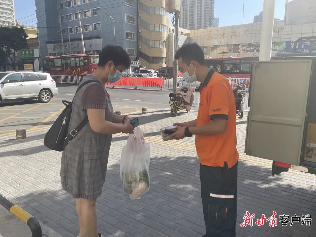 张俊杰为客户派送快件。张燕茹 摄早上8时30分,分装快递的院子里一片繁忙,一个个快递员挤在彩钢房板下面的阴凉处,将当天要派送的快递扫码装车。此时的张俊杰已经装车完毕,他主要负责天润大厦和兰亭福地小区的快递。