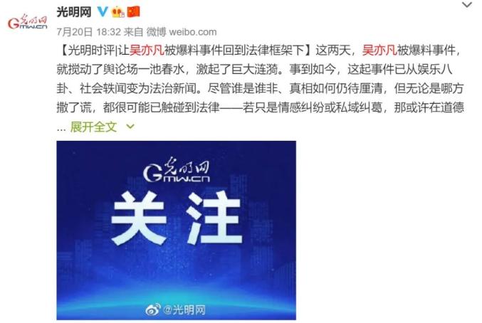 8月1日,新华社就吴亦凡事件发表题为《吴亦凡事件给演艺界再次敲响警钟》评论,称应睁大监管的眼睛,对劣迹艺人一封到底,对涉嫌违法犯罪者依法严惩。