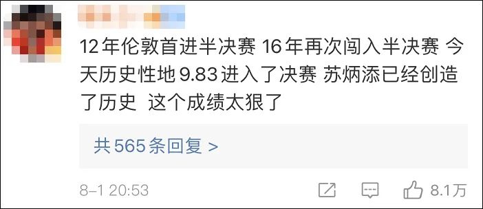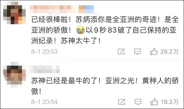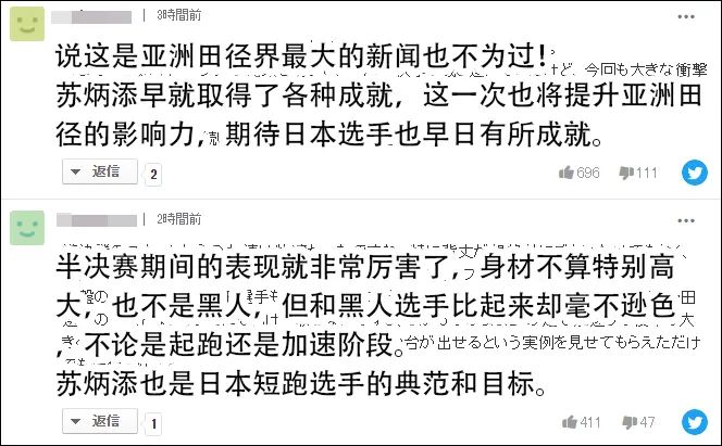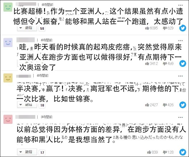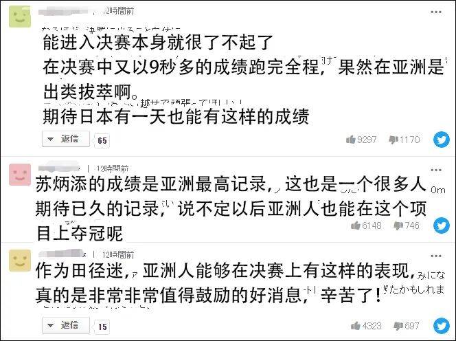 对于苏炳添的成绩,一向在夸赞中国选手时惜字如金的日本网民也连连赞叹。