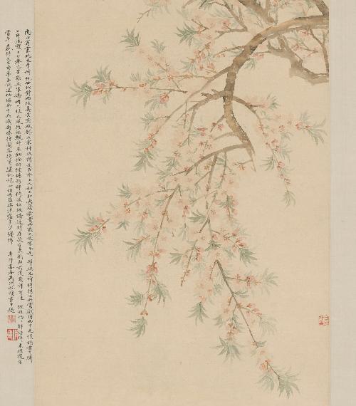 清·恽寿平《桃花图(局部)》 现藏于故宫博物院恽寿平,清代画家,以没骨技法闻名,开创了“常州画派”,与王鉴、王翚、王原祁等人并称“清六家”。