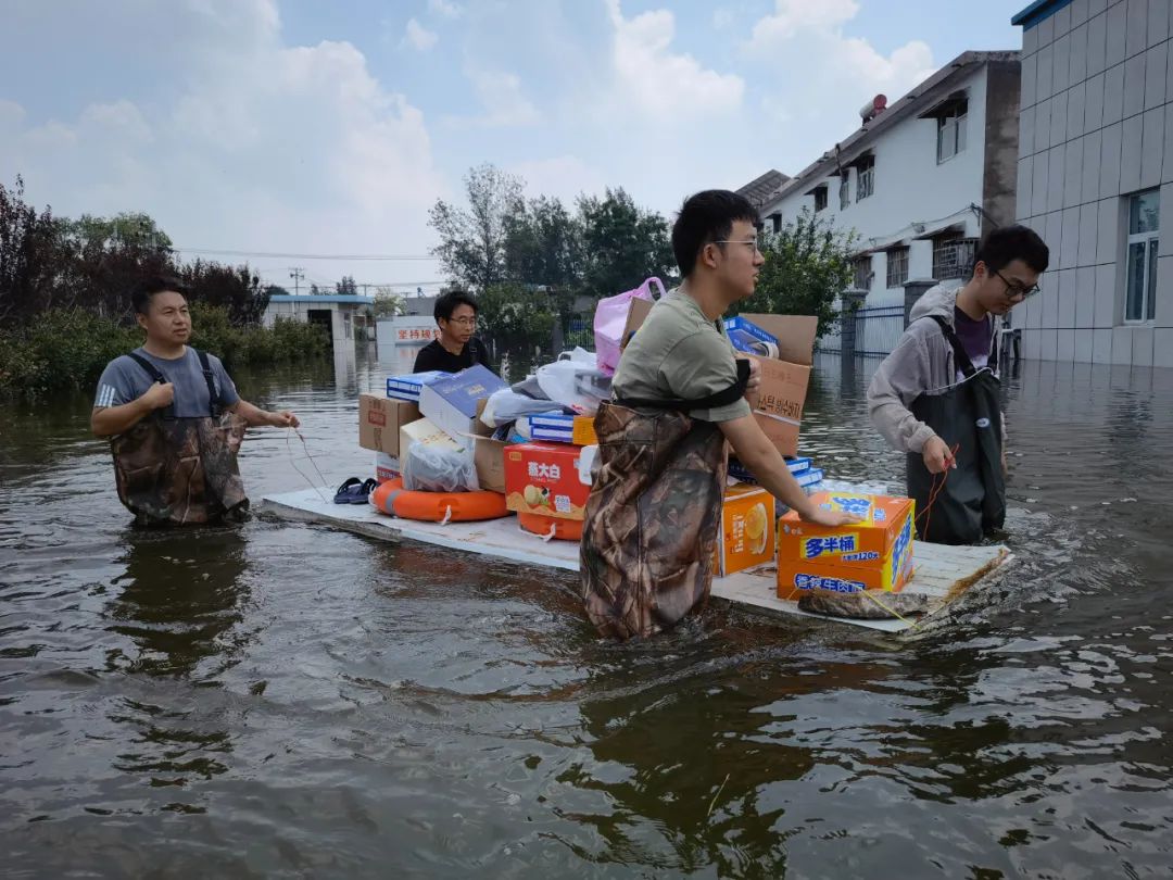 洪水浸入卫辉市气象局。25日上午,长垣市气象局为卫辉市气象局送来增援物资。