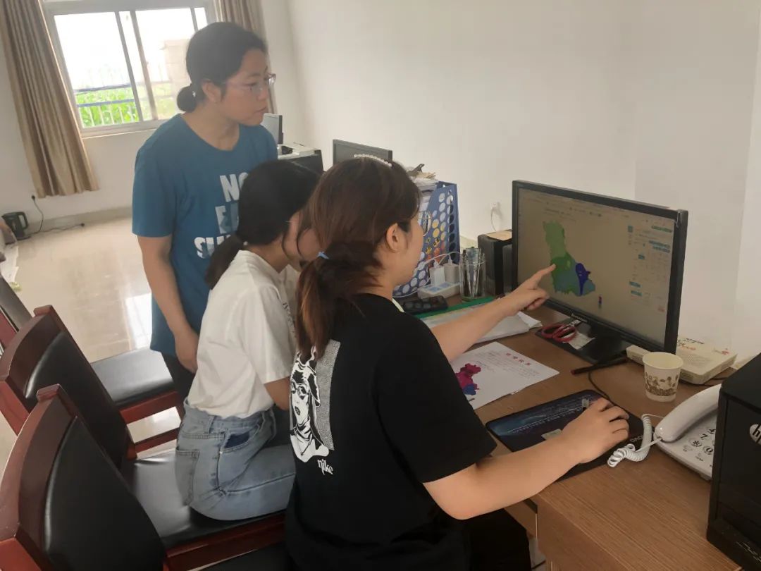 吉锦夷(右一)与同事制作“雨情快报”服务材料