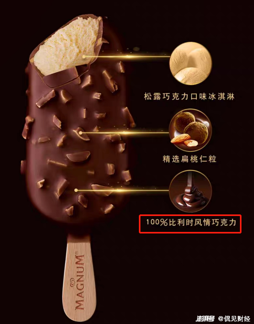 据官方资料介绍,梦龙是和路雪的子品牌,都归属于联合利华,据联合利华的官网宣传资料介绍,梦龙匠心臻选100%进口比利时巧克力。侃见财经在多个电商平台上浏览梦龙的宣传海报也发现,梦龙外面那一层脆皮为100%比利时巧克力。