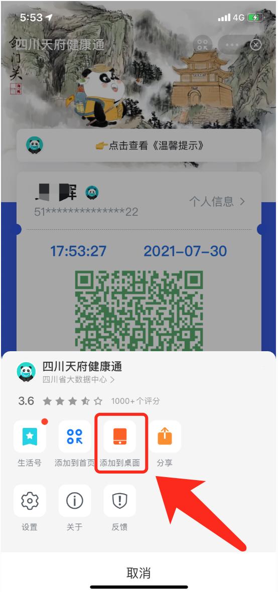 就可把四川天府健康通小程序添加到手机桌面