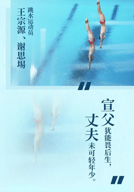 王宗源、谢思埸组合在男双三米跳台决赛中一跳定胜局,总台解说员引用了李白《上李邕》中的“丈夫未可轻年少”。如果你对这句相对陌生的话,那同样出自这首诗中的另外两句“大鹏一日同风起,扶摇直上九万里”则可谓家喻户晓,这不正是中国健儿的壮志和锐气吗?02
