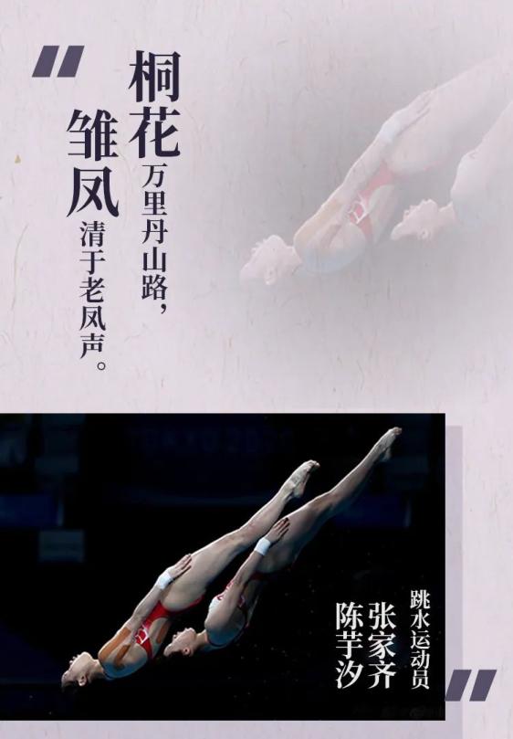 张家齐、陈芋汐两位00后小将女子双人10米台一跳定乾坤,实力之强被网上称为“断层式碾压”。总台解说员引用了李商隐《韩冬郎即席为诗相送》中的一句“雏凤清于老凤声”,诗中李商隐将自己比为“老凤”,感叹雏凤的鸣声一定会比老凤更为清亮动听。跳水梦之队长江后浪推前浪,这句诗真是恰当到了极点。04