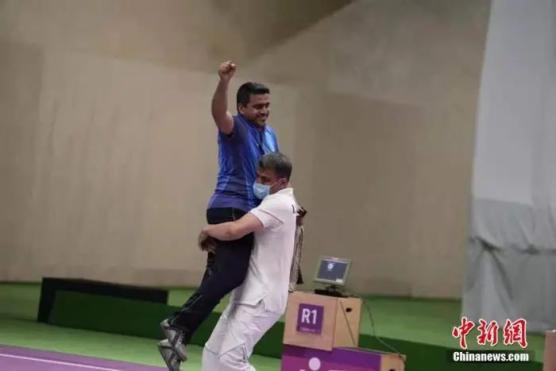 图为伊朗选手福鲁吉与团队成员一起庆祝。中新社记者 杜洋 摄当他与团队成员