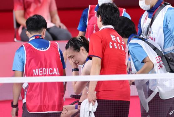 7月29日,张蓓雯受伤退赛。新华社记者 朱峥 摄在赛后接受采访时