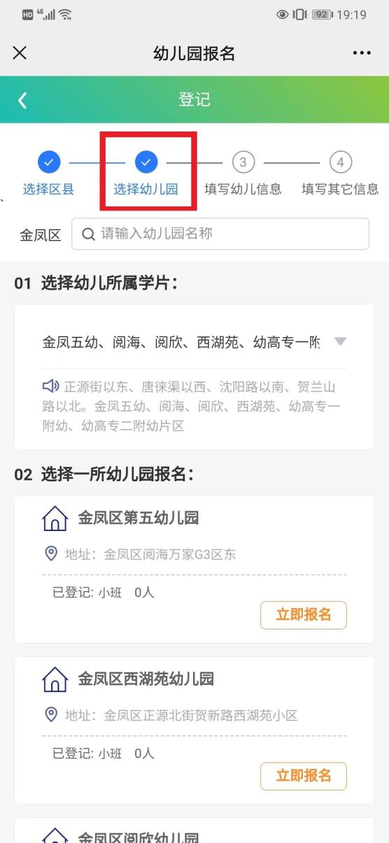请选择要报名的幼儿园,点击“立即报名”进入信息填写页面。