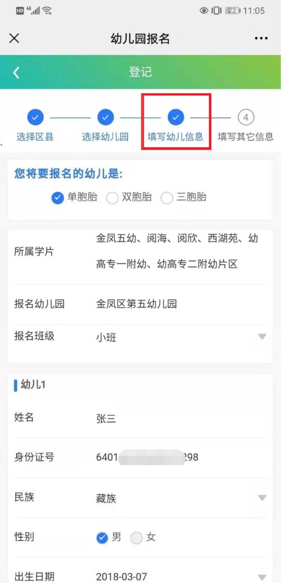 按实际情况依次完成“幼儿信息”和“其它信息”。