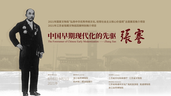 8月6日,浙江自然博物院从南通博物苑引进展览 “《中国早期现代化的先驱——张謇》全国巡回展”在杭州馆二楼油画厅展出。浙江自然博物院作为第一家引进该展览的博物馆,希望藉由本次展览,让更多人知悉张謇先生的生平事迹,传承和发扬张謇先生的爱国精神,以及兴办实业、教育和社会公益事业的精神。