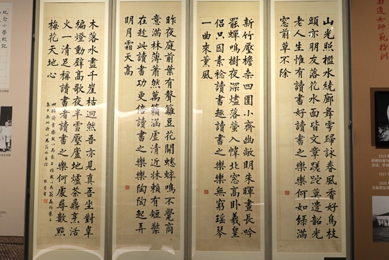 展品以南通博物苑收藏的张謇相关历史文物为主,其中《张謇楷书纪念小学校记》《张謇行楷四时读书乐四条屏》《啬翁嘱编实业教育风景图录函》《南通保坍会给特莱克的聘书》《南通大生第一纺织公司职员证章》《大生系统印章》等文物展品为首次向公众展出。