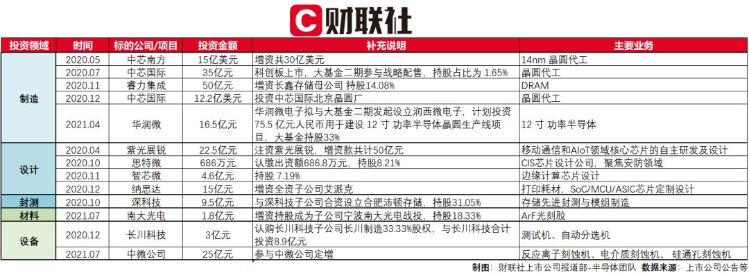 记者梳理相关资料发现,截至目前,大基金二期已公布的投资项目有13个,总投资额超过300亿元人民币。从项目数量和投资金额看,主要去向依旧为半导体制造和IC设计领域。
