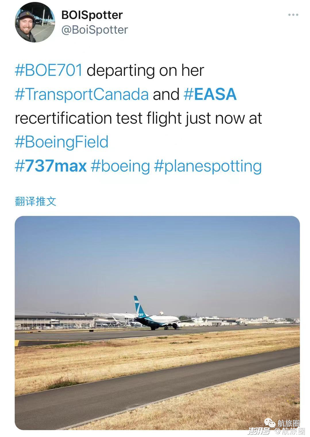 图片来自民航上海审定中心据航旅圈了解,此次改进后的737MAX审定试飞工作同样将由上海审定中心的试飞员完成。