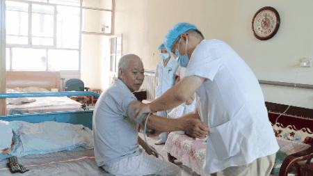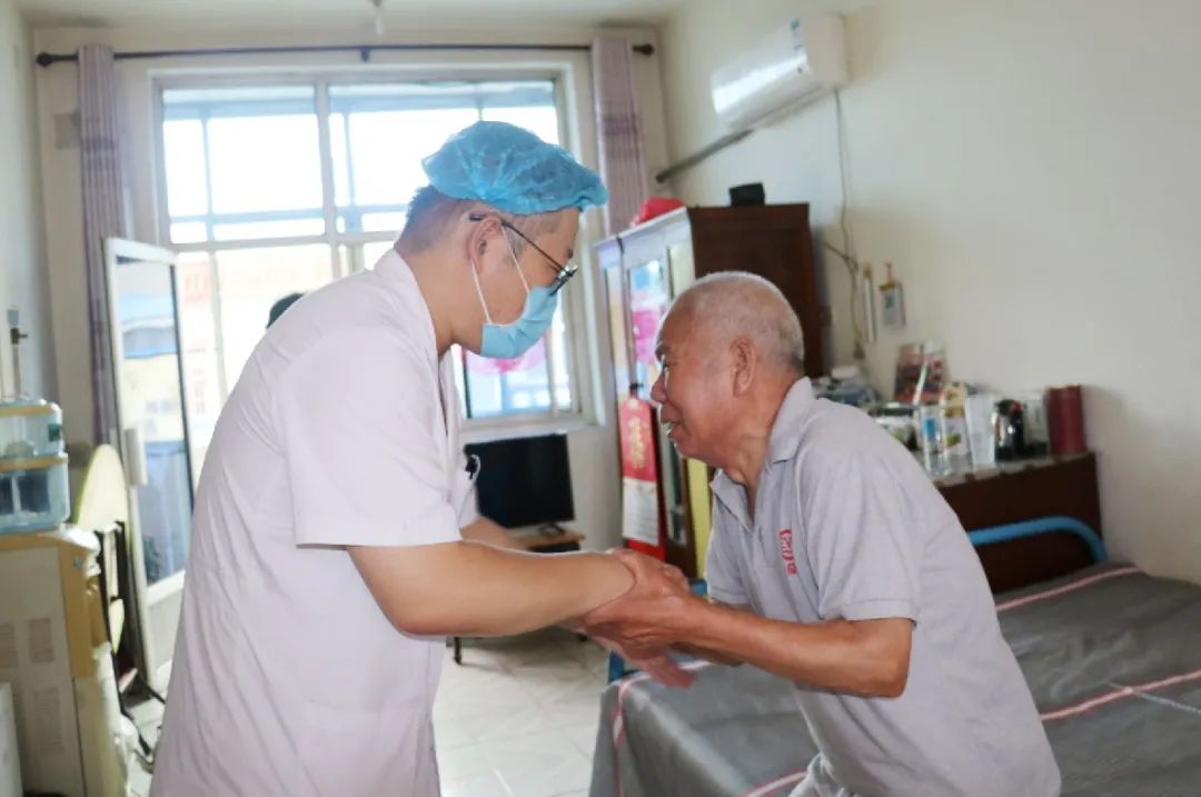 听诊、测量血压、询问用药情况……一番诊查,赵广元确认刘宝田并无大碍,安慰刘凤勇不用担心,并详细叮嘱用药注意事项。真情的服务,让老人感到格外温暖,临走时,刘宝田拉着赵广元的手热泪盈眶:“谢谢你,赵大夫!”