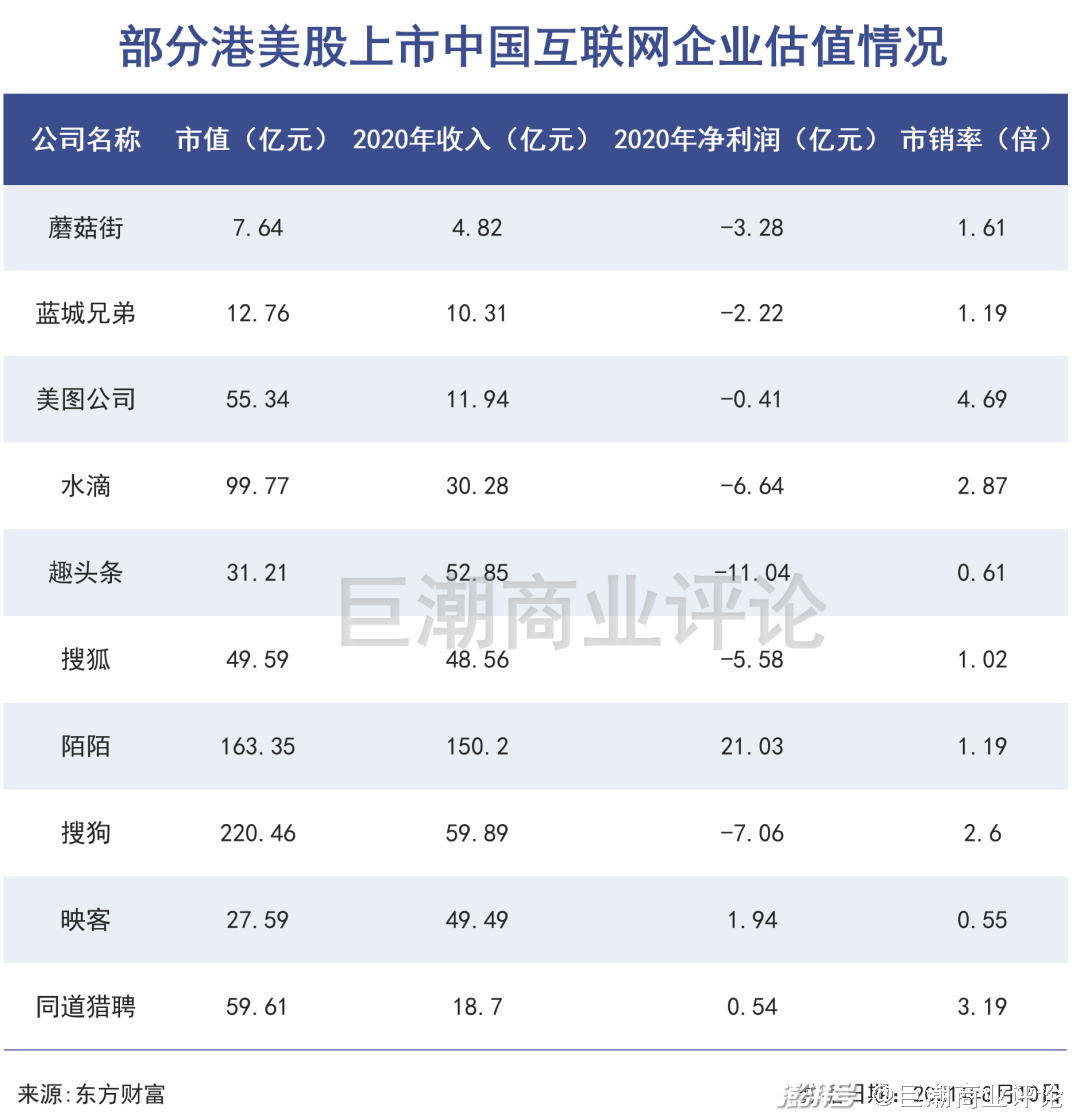 相比之下,国内规模最大的陌生人社交企业陌陌,在2020年录得负增长——收入-11.7%,毛利-17.31%,净利润-29.2%,2021年一季度同样是全面负增长,其市盈率(TTM)已经低至8倍以下,市销率低至1.2倍以下,估值和宝钢接近。