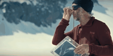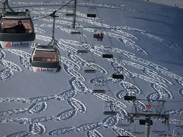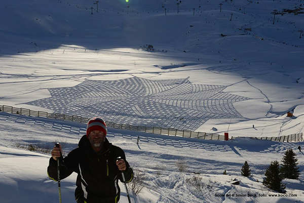 2004年某一天,Simon滑了一天雪后心血来潮,突然在地上走出了一颗星星的形状,到了滑雪场旅馆楼上往下一看,瞬间被自己的杰作帅倒!