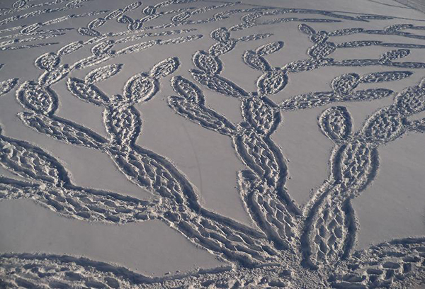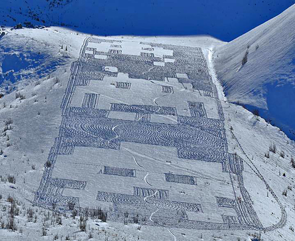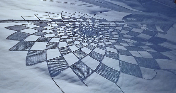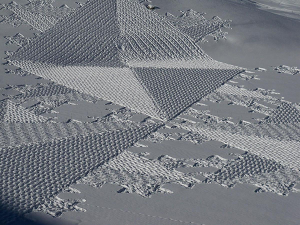 这些宏伟的几何图形存活期完全依赖于天气,试想下,创作到一半又突然下雪话。。。哞哈哈哈哈,估计只能仰天长啸了。