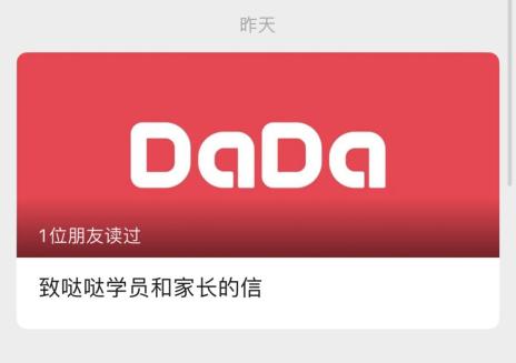 哒哒英语于8月10日在其官方微信公众号发布《致哒哒学员和家长的信》,表示对已完成报名的学员,将继续履行合同和课程交付。即日起不再对境内学员进行境外外教课程的新签及续费。同日,伴鱼少儿英语也在微信公众号表示,不再售卖境外外教课程。