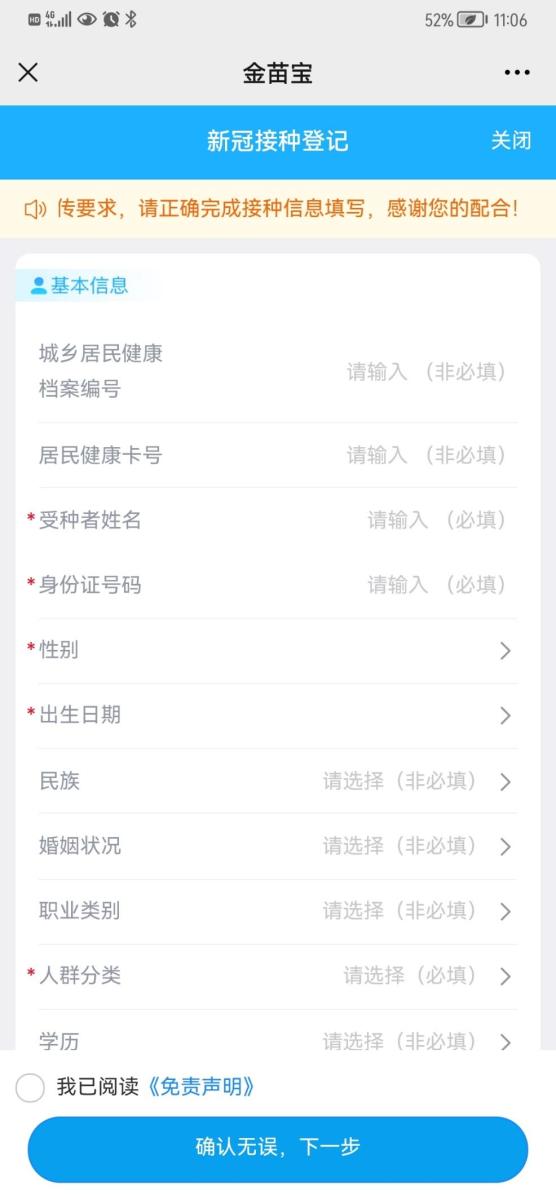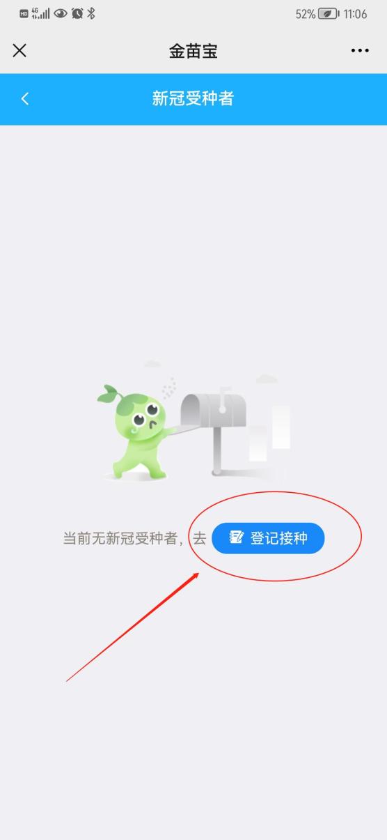 未绑定信息的市民:点击“登记接种”,填写信息。