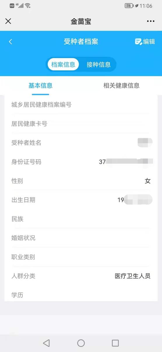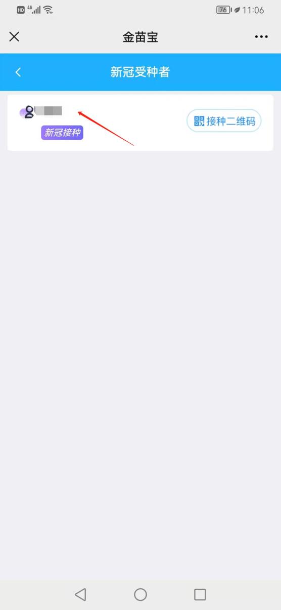 返回“新冠受种者”,点击受种者姓名,查看详细信息。