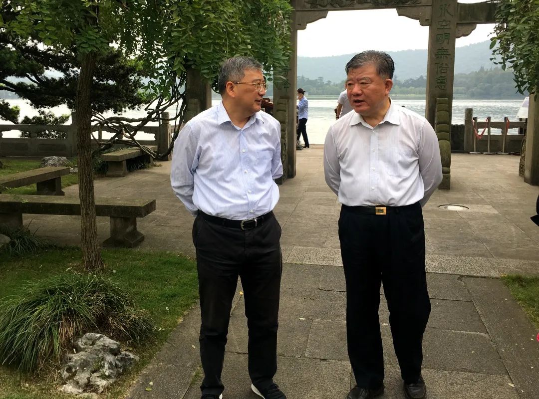 2020年10月,周智林主委陪同全国人大常委会副委员长、农工党中央主席陈竺(右)在杭调研 。