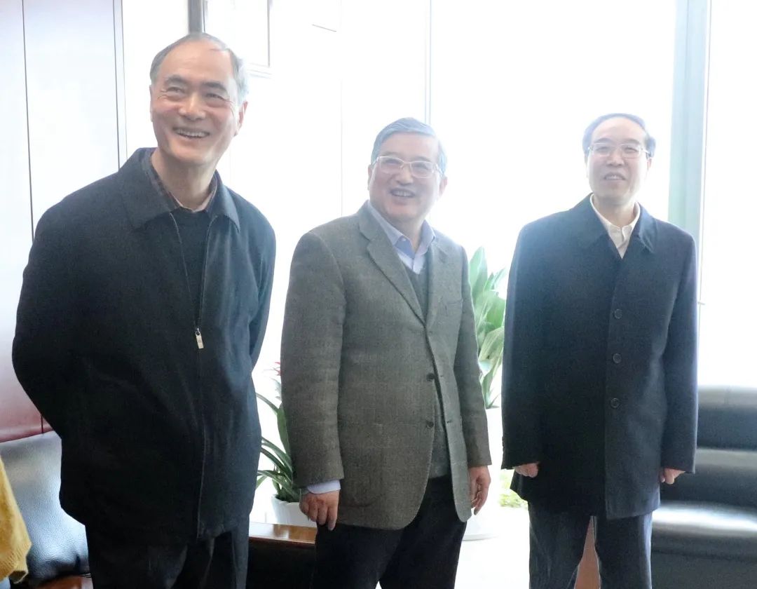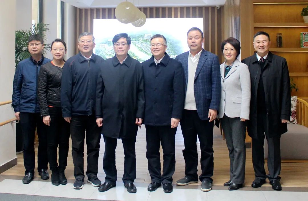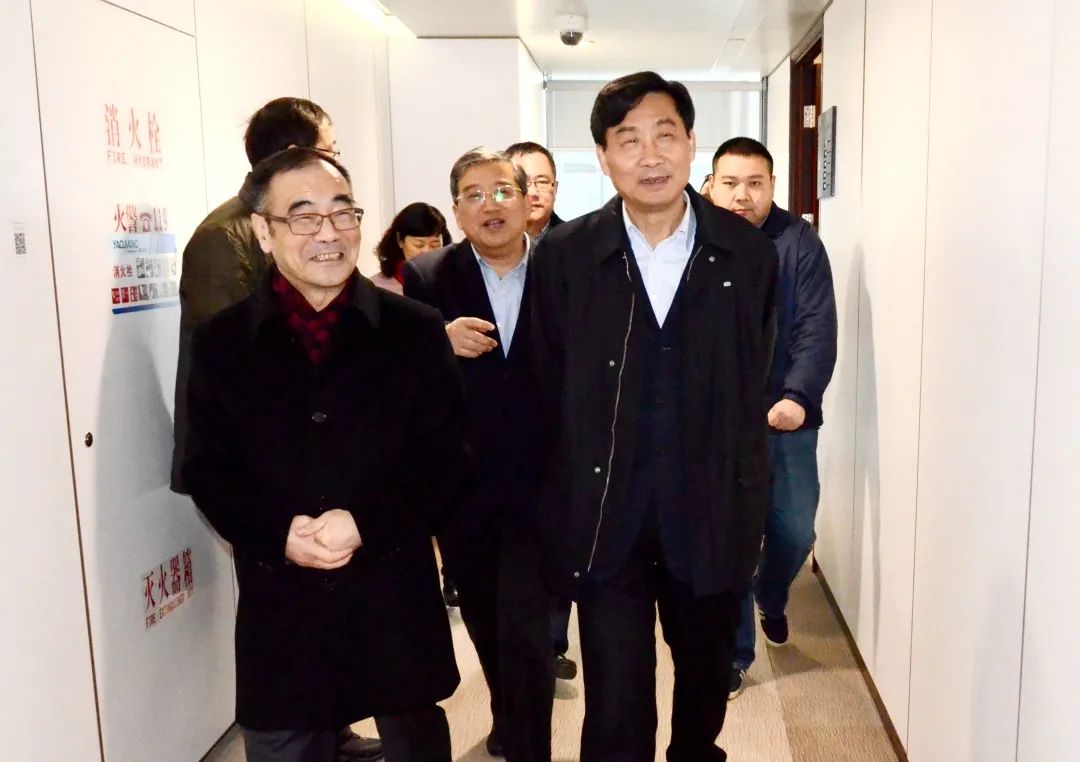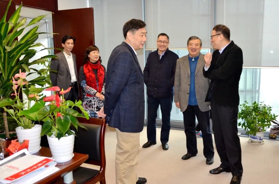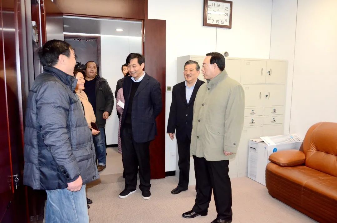 2017年2月,时任省委统战部部长冯志礼(前左),时任市政协副主席、市委统战部部长董建平(前右)等领导走访市委会机关。