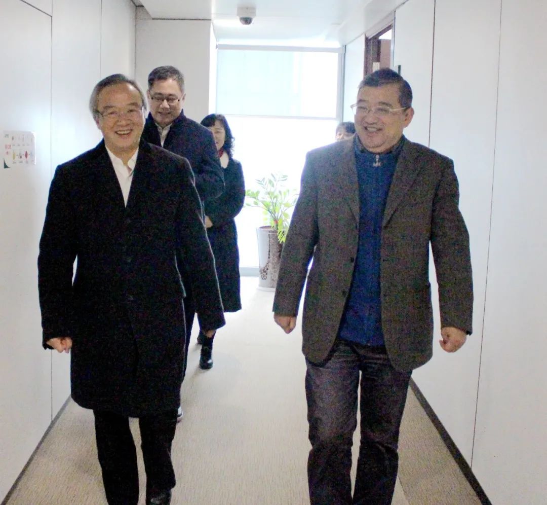 2021年2月,市政协党组书记、主席潘家玮(右),市政协党组副书记、副主席张仲灿(左)走访市委会机关。
