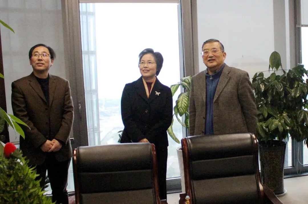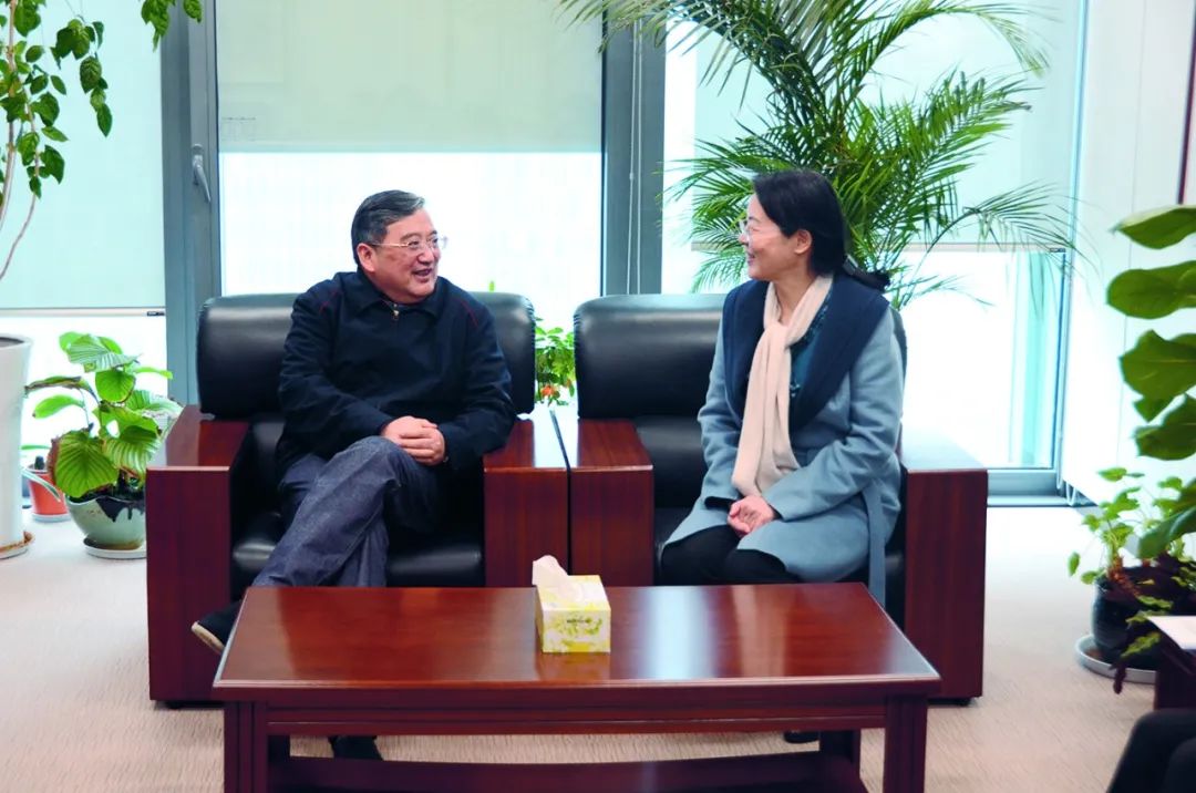 2017年2月,时任市政府副市长陈红英(右)到机关走访。