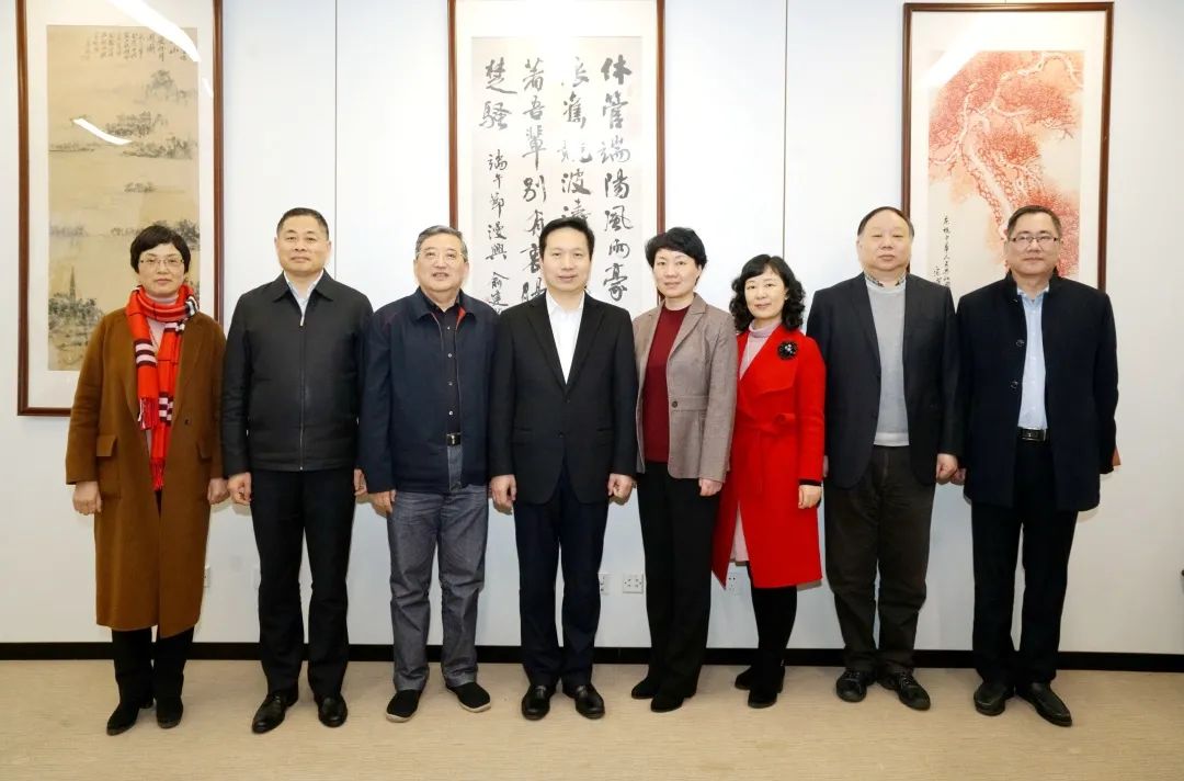 2018年2月,时任省委常委、市委书记赵一德(左四),市委常委、时任市委统战部部长佟桂莉(左五),市委常委、时任市委秘书长许明(左二)等走访市委会机关,并与市委会领导班子合影。