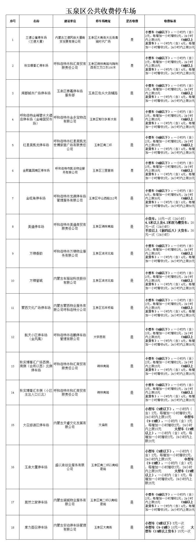 原标题:《最新!呼和浩特市地下停车场清单、玉泉区及新城区免费停车场清单来了》